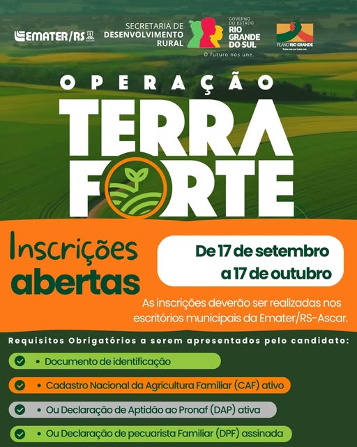 Uma grande conquista para a nossa agricultura familiar! O Governo do Estado lançou o Programa Terra Forte, que vai apoiar a recuperação produtiva e ambiental das propriedades, com foco na conservação de solos e no fortalecimento das atividades rurais.