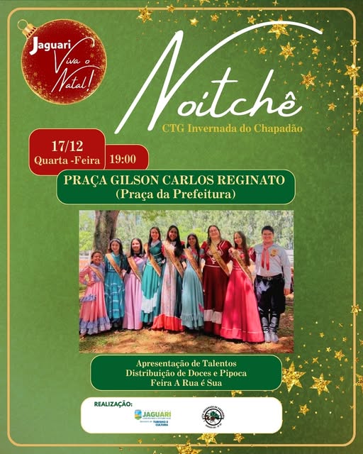 Chegou o dia de viver a tradição, a cultura e o espírito natalino! Hoje acontece a Noitchê Natalina, promovida pelo CTG Invernada do Chapadão, com o apoio da Prefeitura de Jaguari.